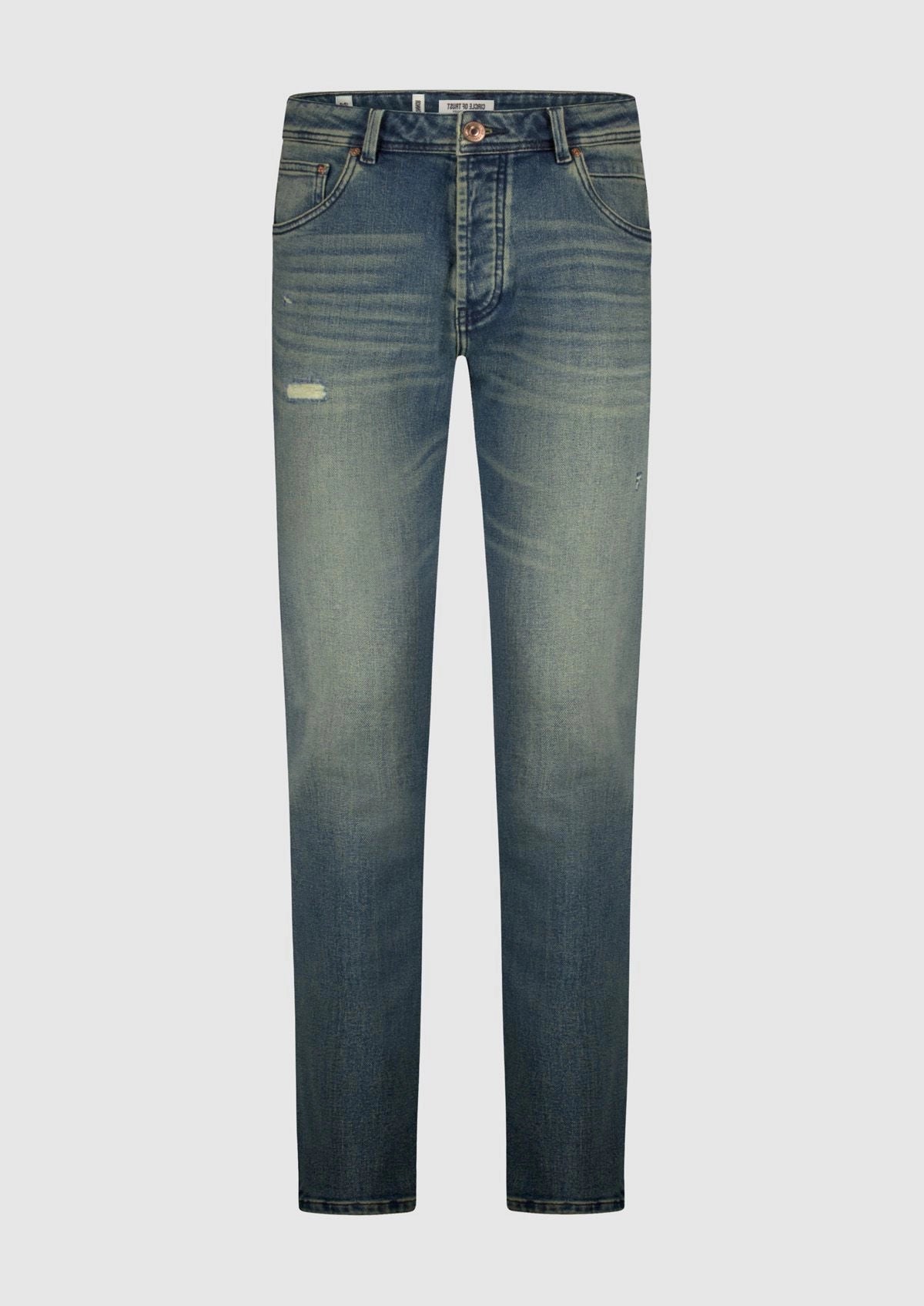 De Connor is onze regular fit jeans voor heren, de broek heeft een rechte fit met een 5-pocket ontwerp en een gulp met knoopsluiting. Uitgevoerd in een groenblauwe tint met een gelige fade en beschadigde details.