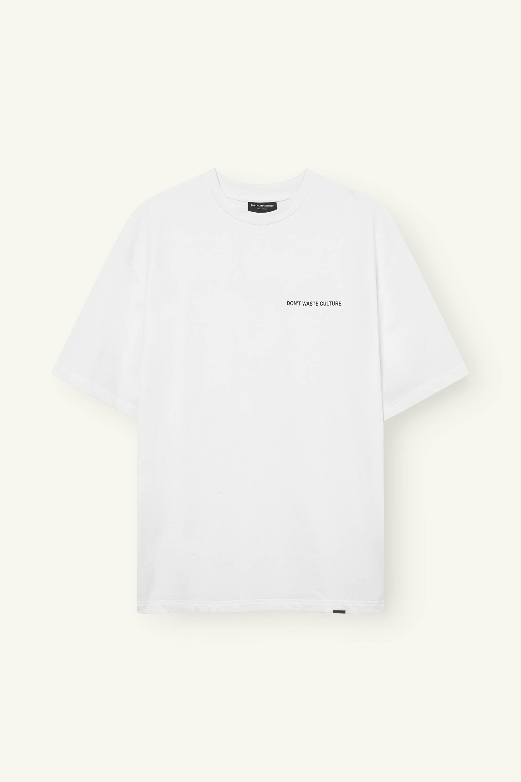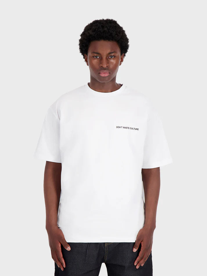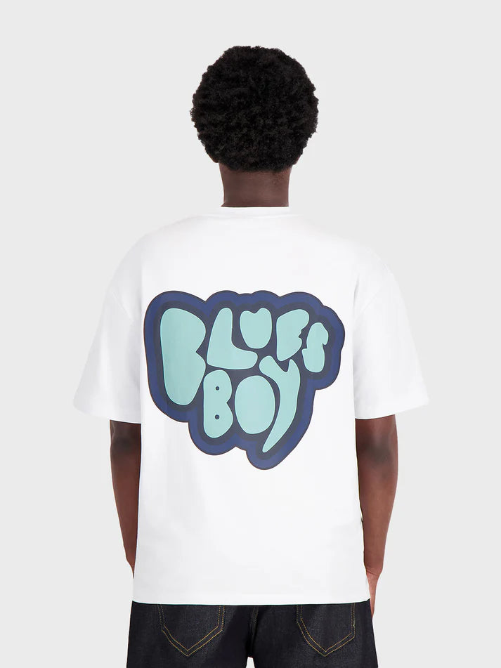 Het Calyra T-Shirt van Don’t Waste Culture ademt het thema van de Notes of Nostalgia collectie. De witte tee is oversized, zacht en gemaakt om te dragen alsof ’ie al jaren bij je hoort. Op de rug prijkt een speelse ‘Blues Boy’ graphic in helderblauw: een knipoog naar bluesplaten, barlicht en vintage concertposters. Subtiel logo op de borst, statement op de rug.