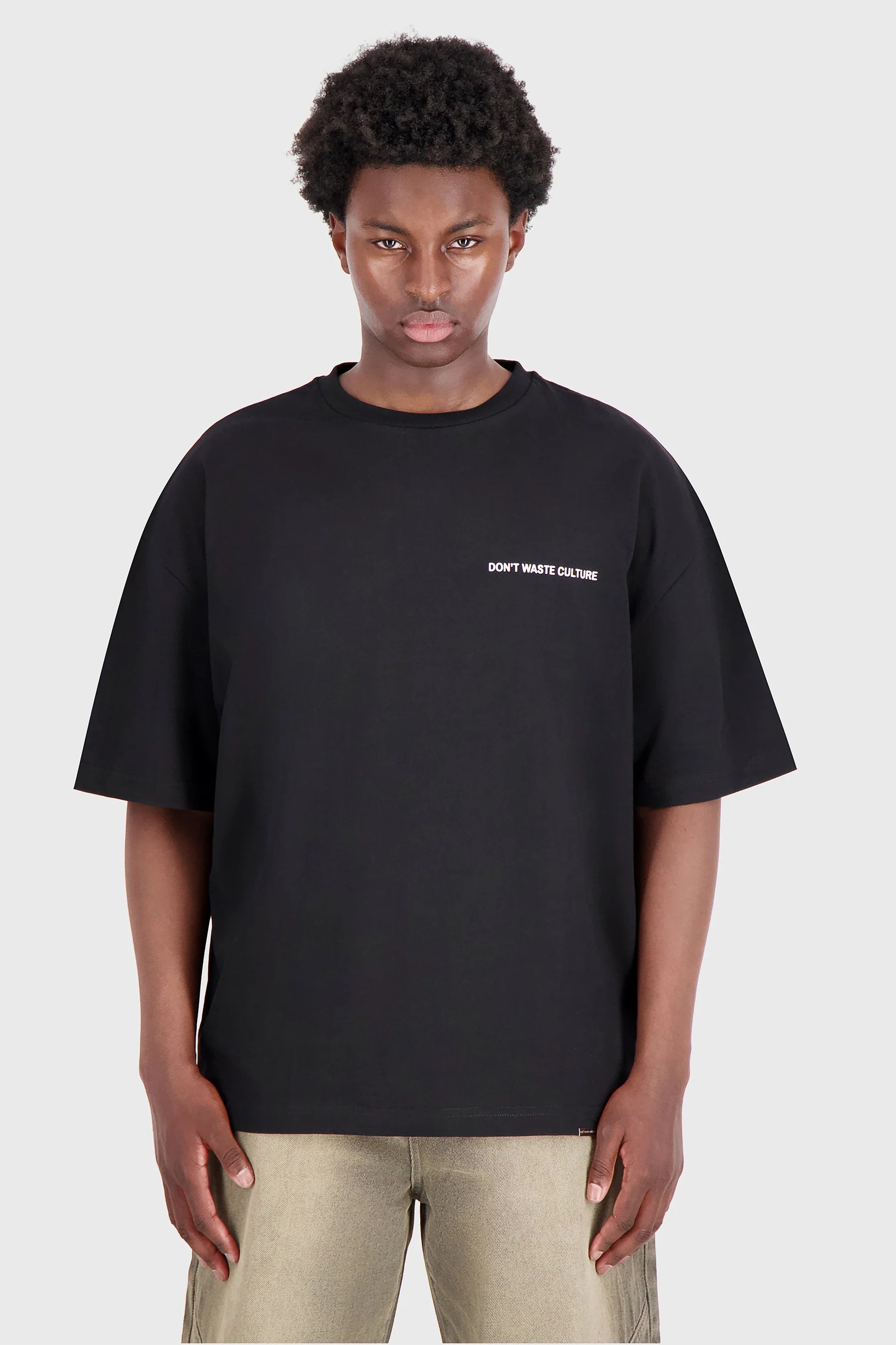 Zwart, oversized en met een boodschap. Het Zalira T-Shirt van Don’t Waste Culture mixt de blues energy met een modern silhouet. De voorkant houdt het kalm met subtiele branding, terwijl de achterkant een verhaal vertelt via de kleurrijke “Pop’s Record Store” graphic: een fictieve plek die klinkt als een oude bluesplaat en eruitziet als streetwear. De zwarte kleur maakt ‘m makkelijk te combineren met elke jeans of short, terwijl het zware katoen zorgt voor een stevige, duurzame feel.